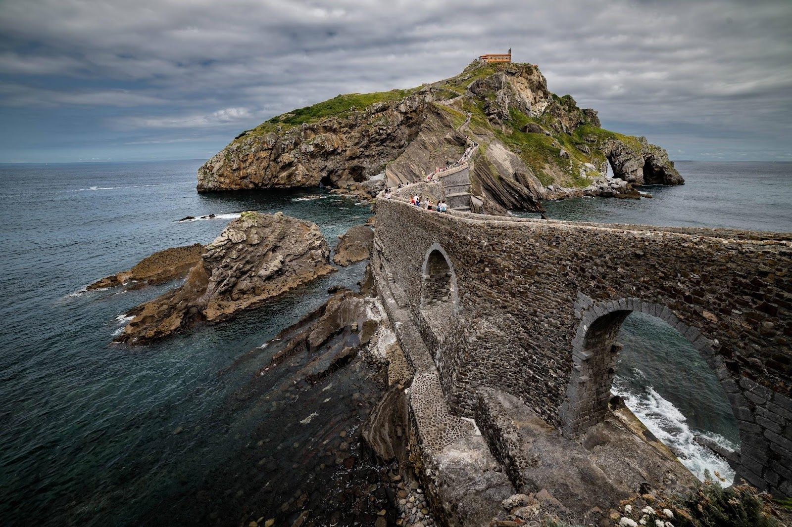 This rocky islet is connected to the mainland by a narrow stone bridge and a staircase of roughly 240 steps. At its summit stands a hermitage from the 10th century. The landscape was also famous for appearing as "Dragonstone" in the TV series Game of Thrones.