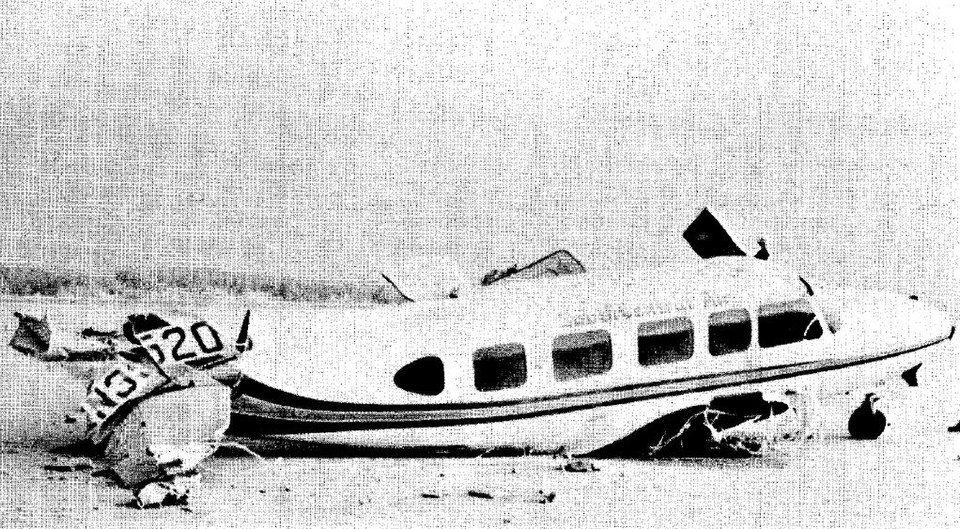In 1993, pilot Edward Wyer was flying a Piper Navajo from Birmingham to Norwich with seven passengers aboard. One engine tore loose in midair, and its propeller wrecked the other. With no power and barely controllable flight, Wyer aimed for a field near power lines and slid the airplane in on its belly. Believe it or not, everyone walked away! Sore necks, for sure, but they made it.